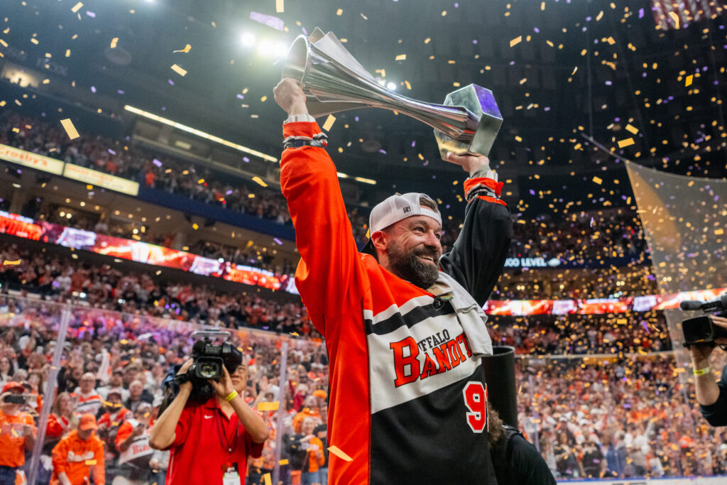 At 37, Buchanan has evolved from a well-traveled journeyman into a heart-and-soul leader for a Buffalo team celebrating its third consecutive NLL championship. During the Bandits’ four straight appearances in the championship round, the famous number 91 has scored a highly impressive 13 goals and 20 assists, while vacuuming up 57 loose balls.